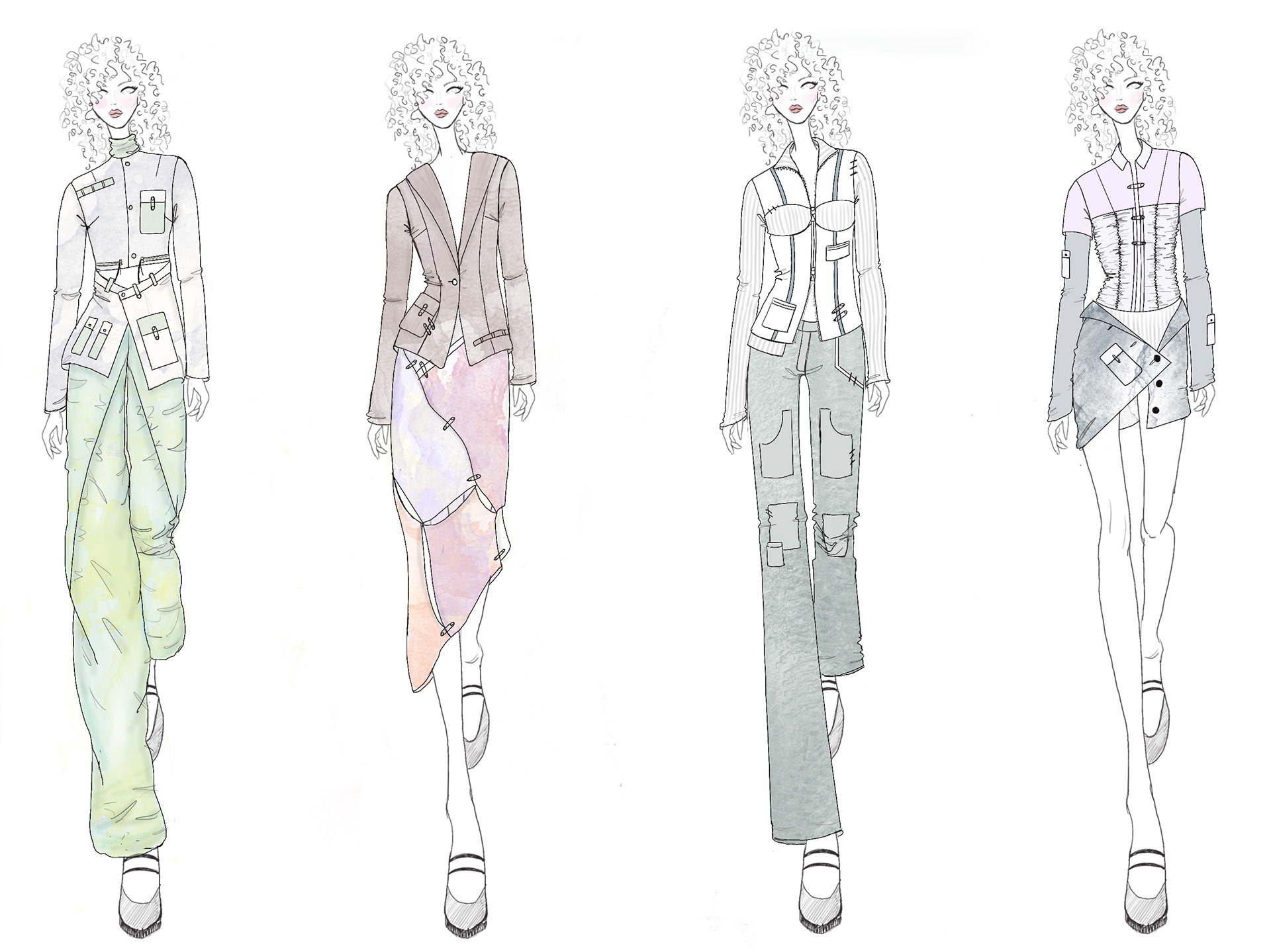 Parsons sophomore-year responsible design collection. This was inspired by utility and gardening clothes as well as natural dye derived from the fresh fruits and vegetables gardened.